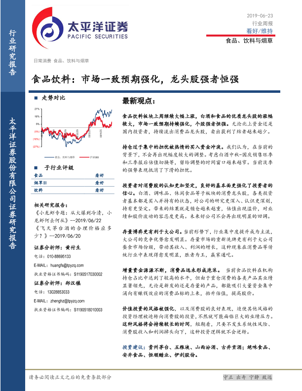 【太平洋证券】【20190623】食品饮料行业周报:市场一致预期强化,龙头股强者恒强-4页