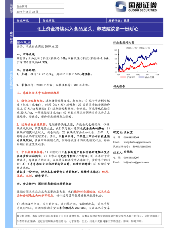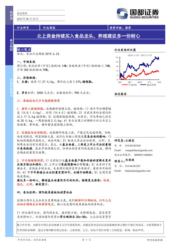 【国都证券】【20190623】食品饮料行业周报:北上资金持续买入食品龙头,养殖建议多一份耐心-3页