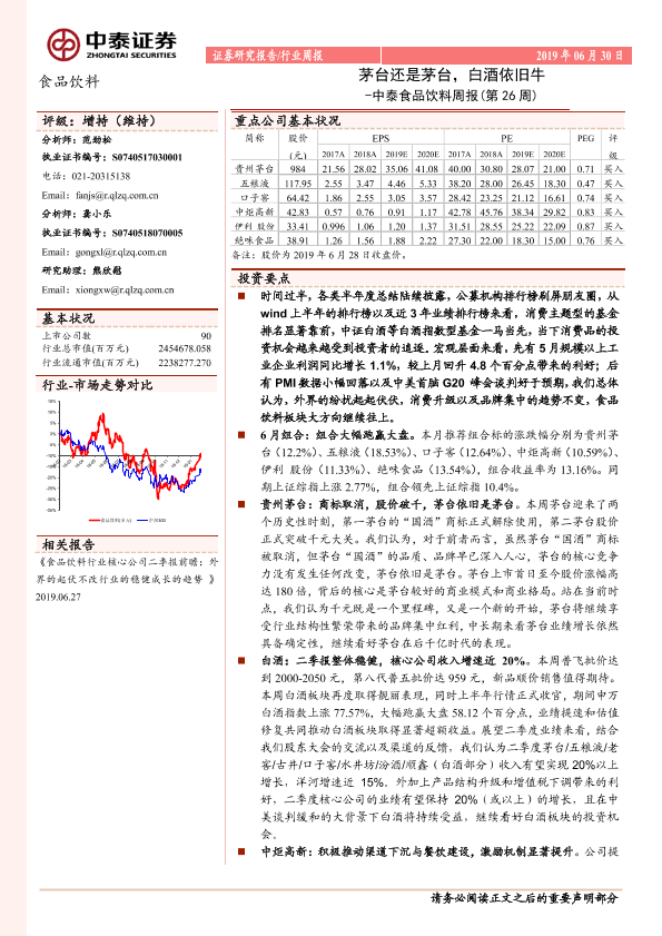 【中泰证券】【20190630】中泰食品饮料周报(第26周):茅台还是茅台,白酒依旧牛-8页