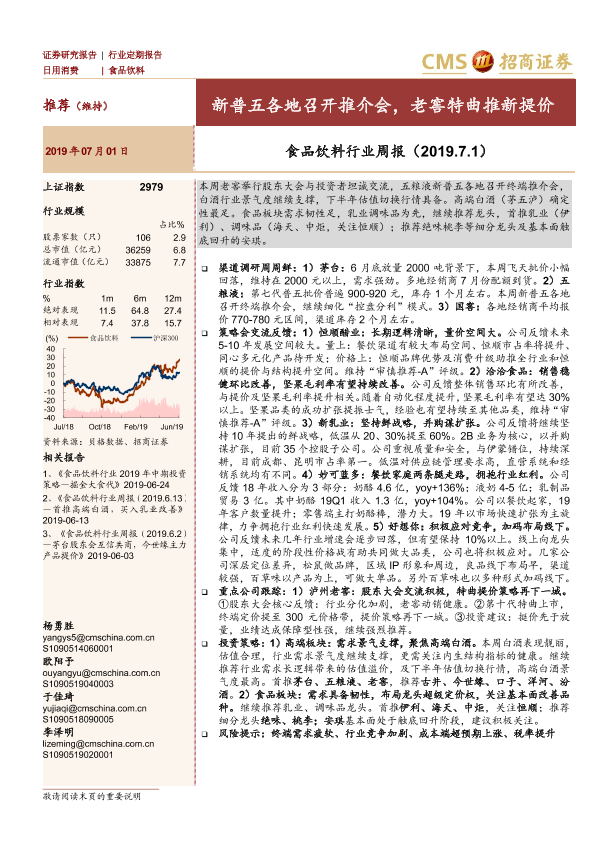 【海通证券】【20190701】食品饮料行业周报:新普五各地召开推介会,老窖特曲推新提价-8页