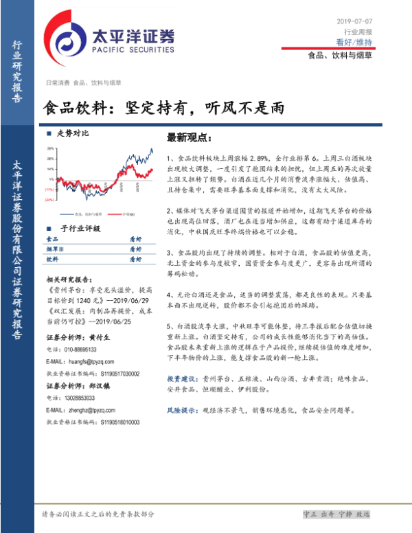 【太平洋证券】【20190707】食品饮料行业周报:坚定持有,听风不是雨-3页