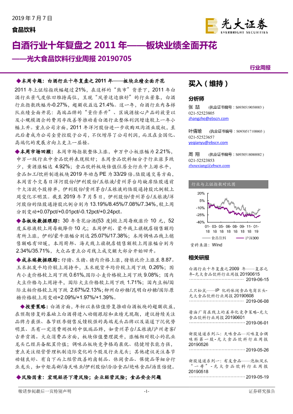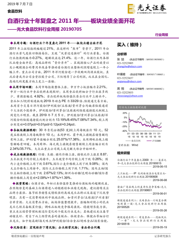 【光大证券】【20190707】食品饮料行业周报:白酒行业十年复盘之2011年,板块业绩全面开花-24页