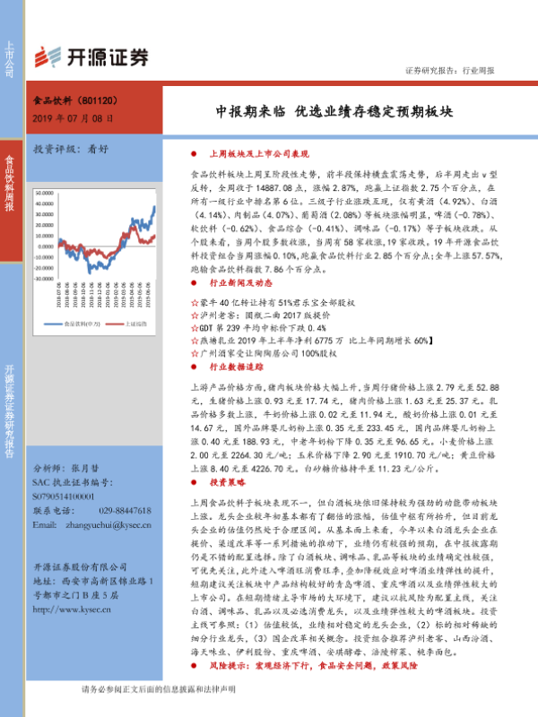 【开源证券】【20190708】20190708-开源证券-食品饮料行业周报:中报期来临 优选业绩存稳定预期板块-16页
