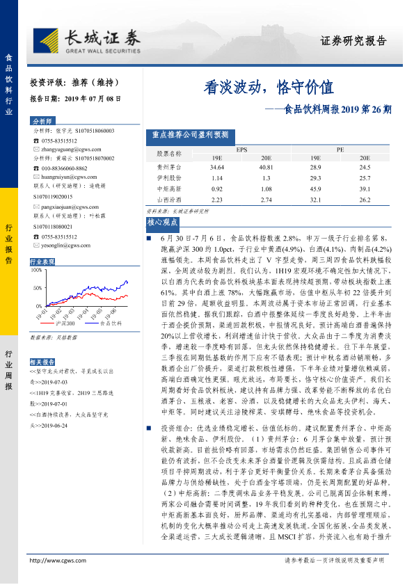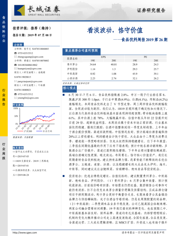 【长城证券】【20190708】食品饮料周报2019第26期:看淡波动,恪守价值-11页
