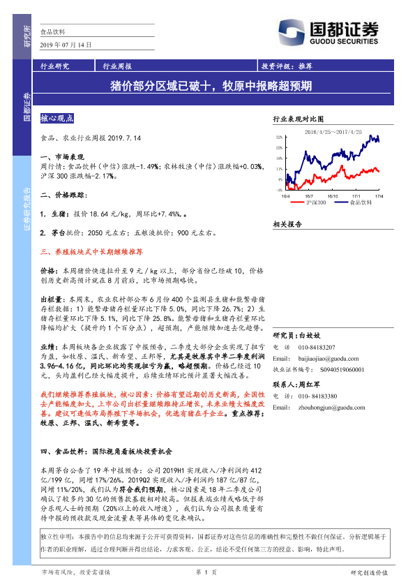 【国都证券】【20190714】食品饮料行业周报:猪价部分区域已破十,牧原中报略超预期-3页