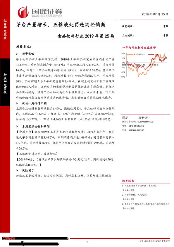【国联证券】【20190715】食品饮料行业2019年第25期:茅台产量增长,五粮液处罚违约经销商-12页