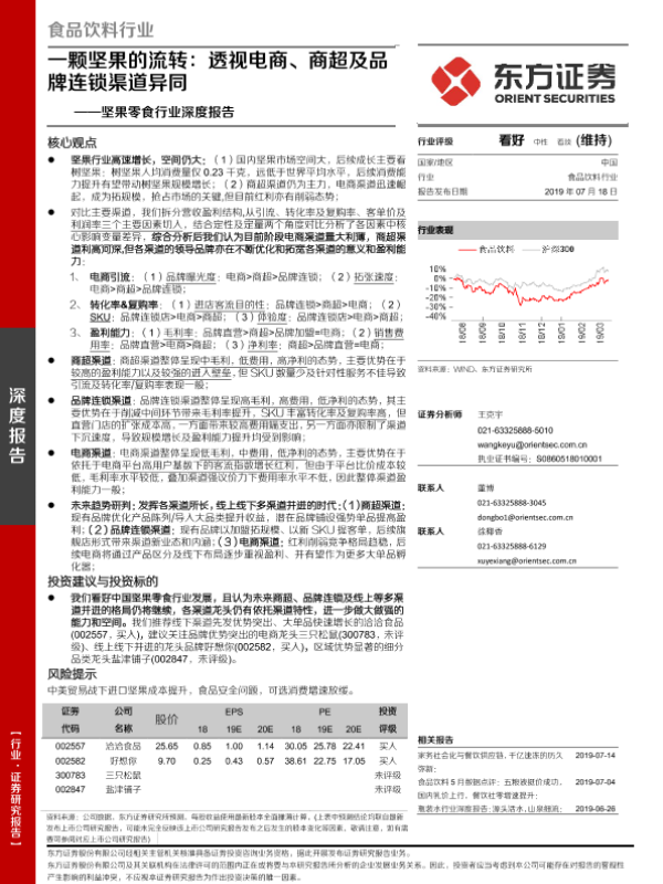 【东方证券】【20190718】20190718-东方证券-坚果零食行业深度报告:一颗坚果的流转:透视电商、商超及品牌连锁渠道异同-30页