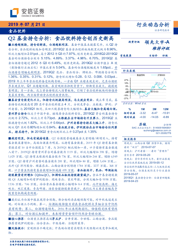 【安信证券】【20190721】食品饮料:Q2基金持仓分析:食品饮料持仓创历史新高-8页