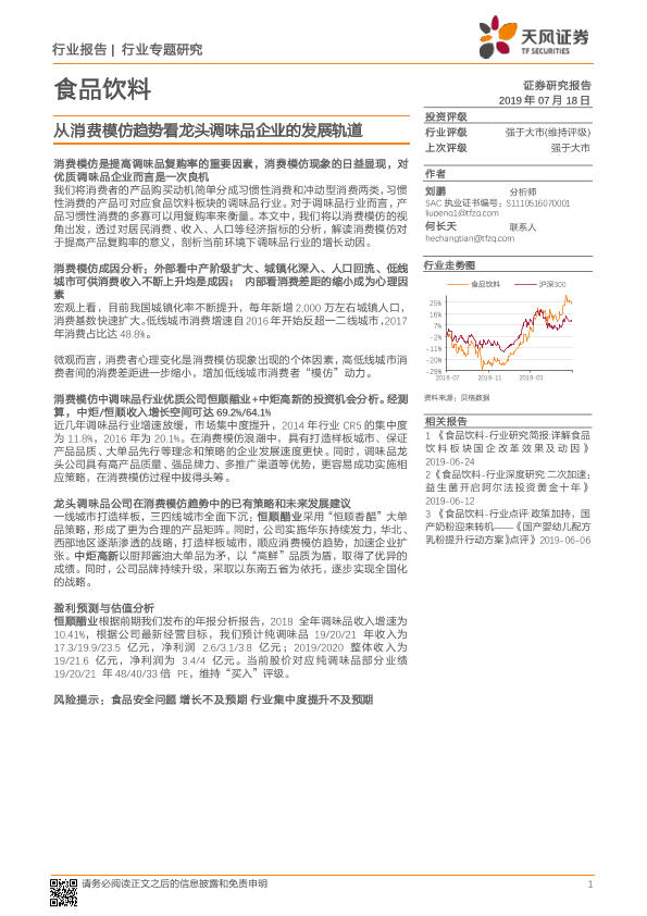 【天风证券】【20190718】食品饮料行业专题研究:从消费模仿趋势看龙头调味品企业的发展轨道-25页