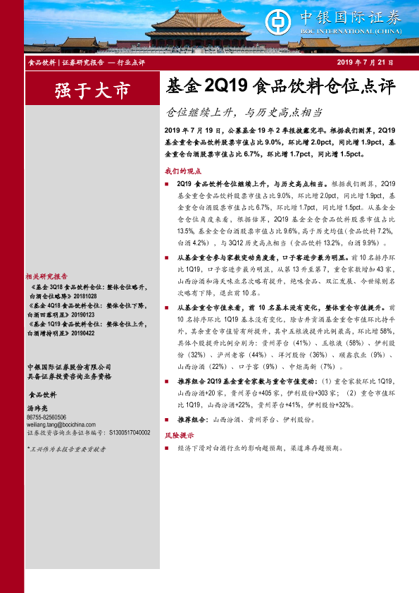 【中银证券】【20190721】基金2Q19食品饮料仓位点评:仓位继续上升,与历史高点相当-7页