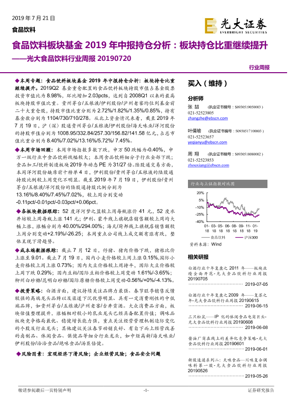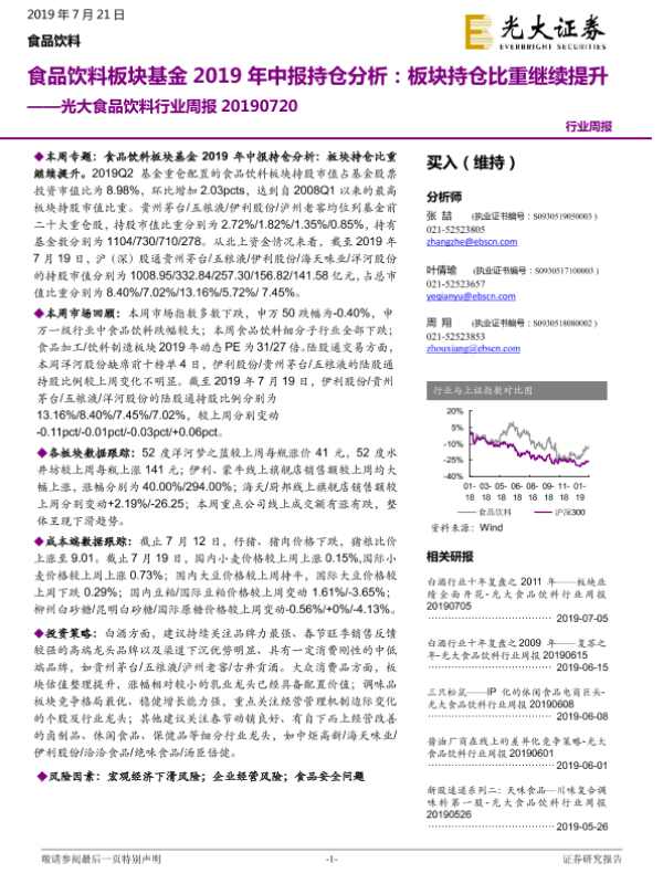 【光大证券】【20190721】光大食品饮料行业周报:食品饮料板块基金2019年中报持仓分析:板块持仓比重继续提升-26页