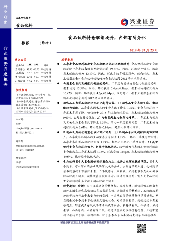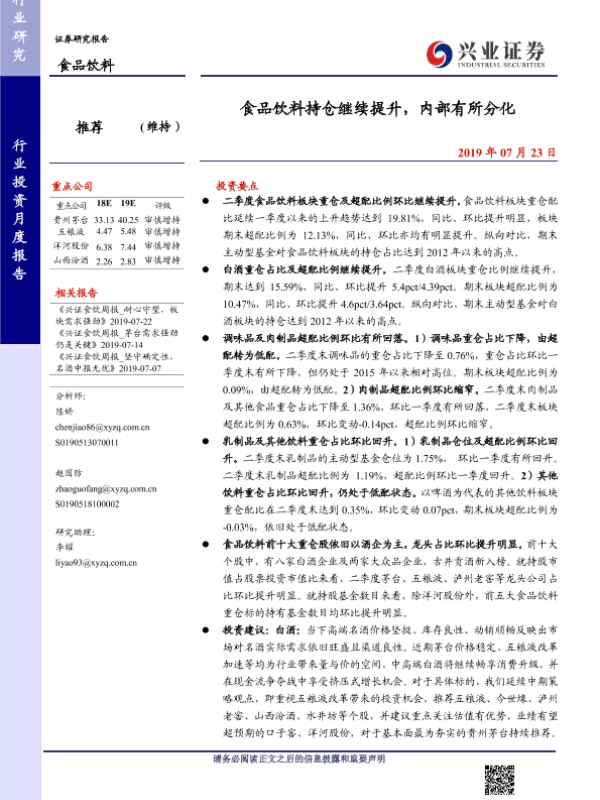 【兴业证券】【20190723】食品饮料持仓继续提升,内部有所分化-11页