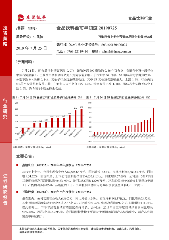 【东莞证券】【20190725】食品饮料盘前早知道:百润股份上半年预调鸡尾酒业务保持快增-3页