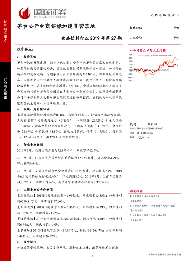 【国联证券】【20190728】食品饮料行业2019年第27期:茅台公开电商招标加速直营落地-12页