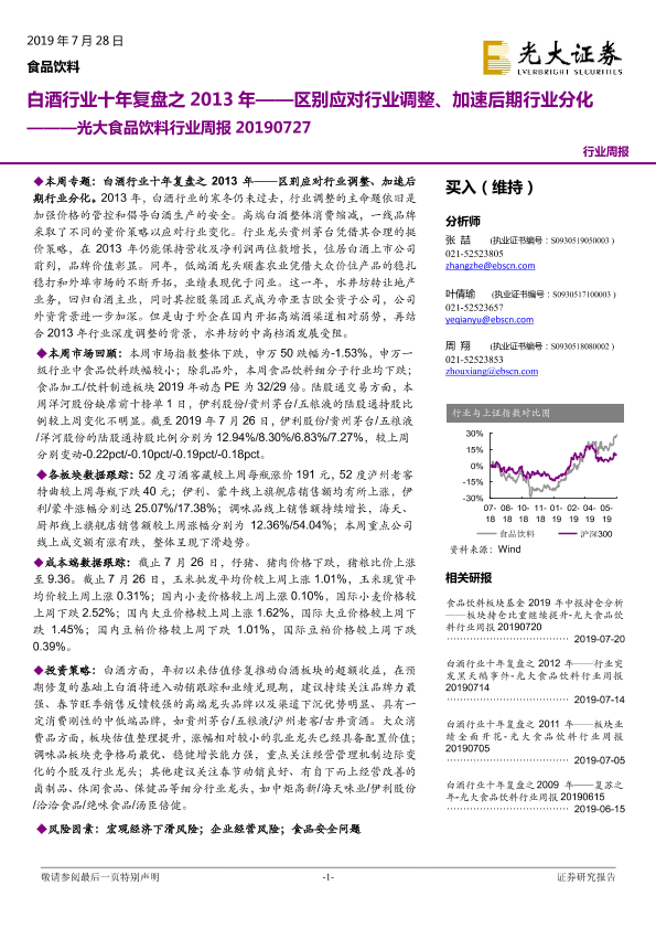 【光大证券】【20190728】光大食品饮料行业周报:白酒行业十年复盘之2013年——区别应对行业调整、加速后期行业分化-26页