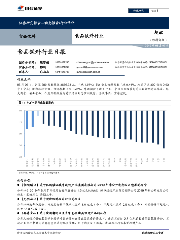 【国信证券】【20190807】食品饮料行业日报-5页