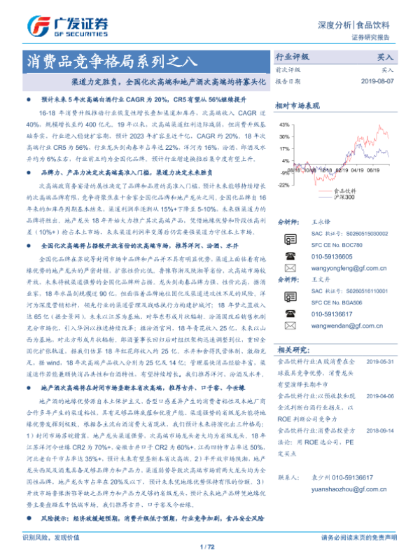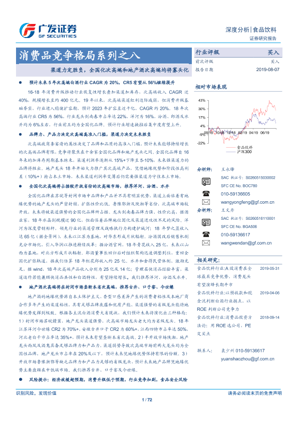 【广发证券】【20190807】消费品竞争格局系列之八:渠道力定胜负,全国化次高端和地产酒次高端均将寡头化-72页