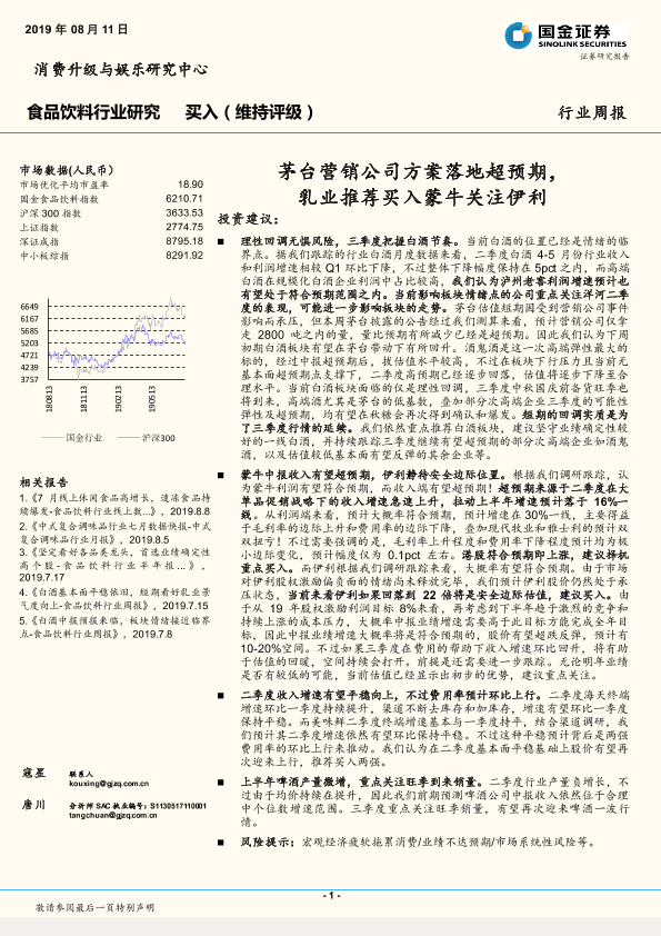 【国金证券】【20190811】食品饮料行业研究:茅台营销公司方案落地超预期,乳业推荐买入蒙牛关注伊利-23页