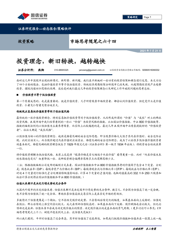 【国信证券】【20210721】市场思考随笔之六十四:投资理念,新旧转换,越转越快-11页