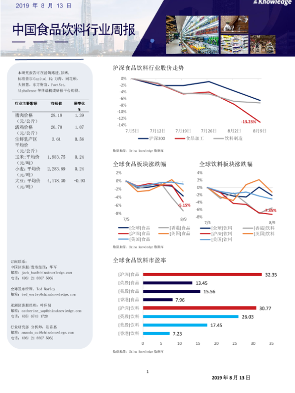 【China Knowledge】【20190813】20190813-China Knowledge-中国食品饮料行业周报-11页