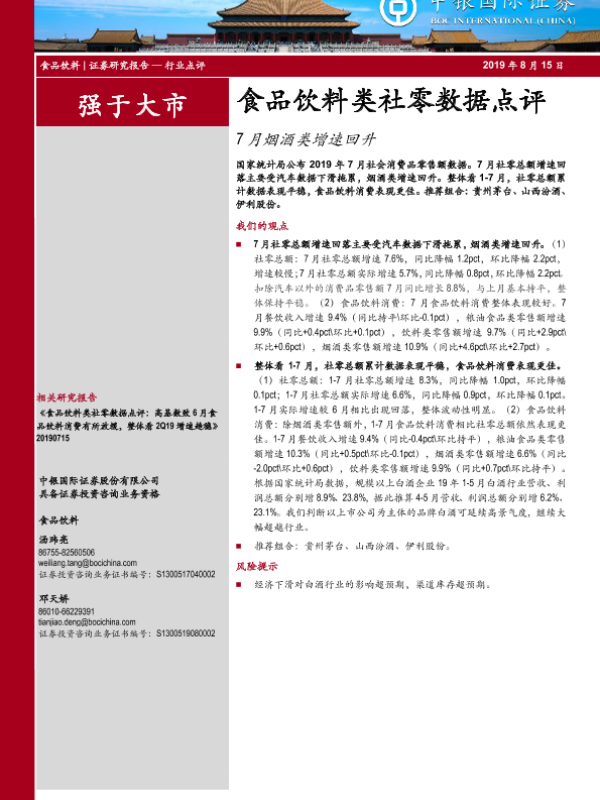 【中银证券】【20190815】食品饮料类社零数据点评:7月烟酒类增速回升-4页
