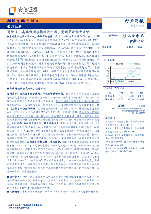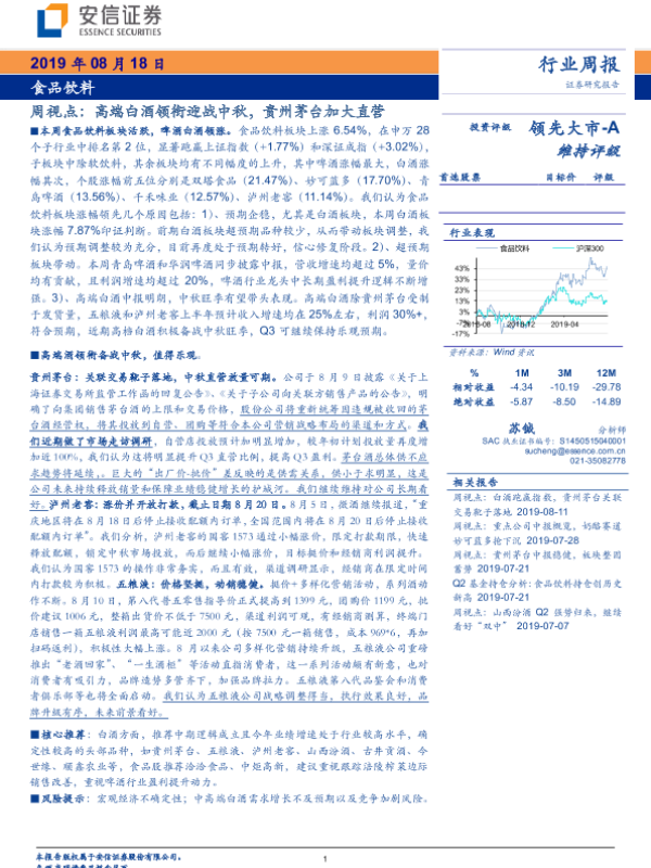 【安信证券】【20190818】20190818-安信证券-食品饮料周视点:高端白酒领衔迎战中秋,贵州茅台加大直营-17页