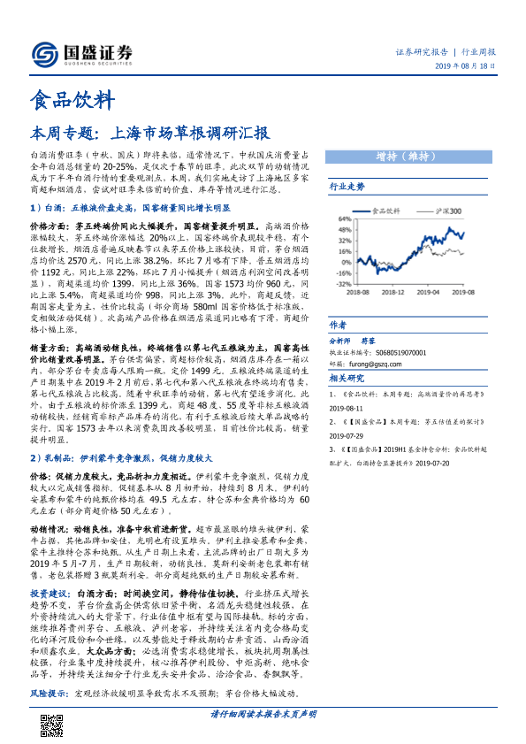 【国盛证券】【20190818】20190818-国盛证券-食品饮料行业周报:本周专题:上海市场草根调研汇报-22页