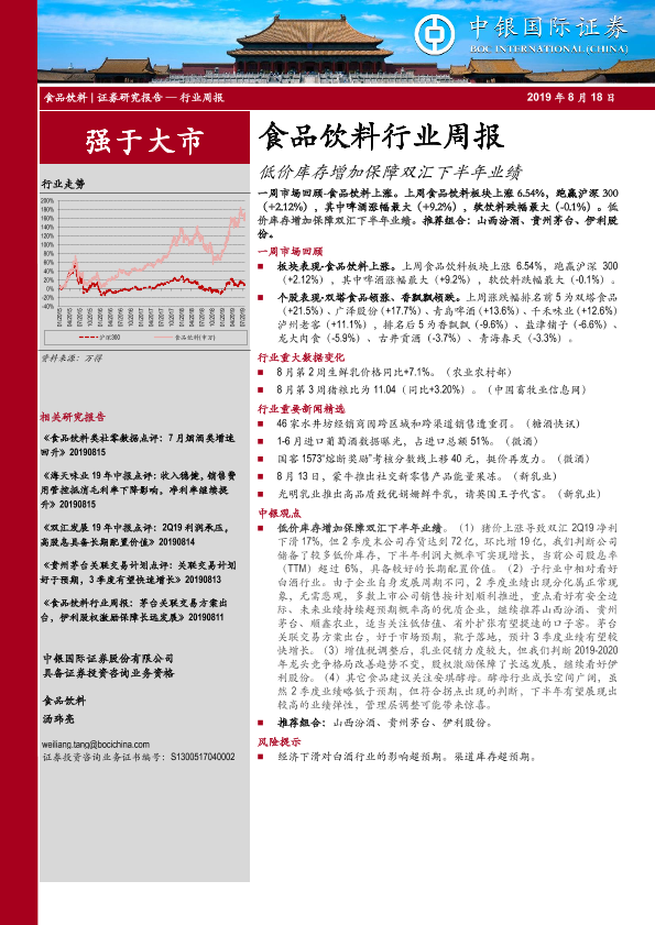 【中银证券】【20190818】食品饮料行业周报:低价库存增加保障双汇下半年业绩-16页