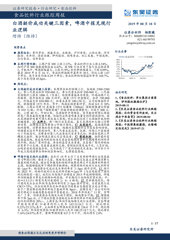 【东吴证券】【20190818】食品饮料行业跟踪周报:白酒挺价成功关键三因素,啤酒中报兑现行业逻辑-17页