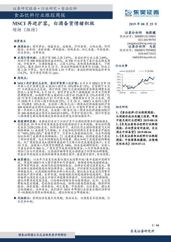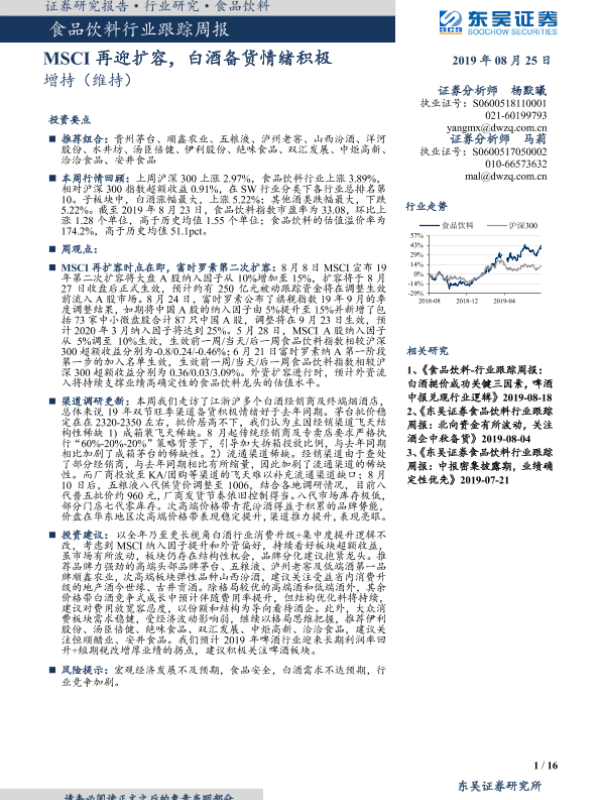 【东吴证券】【20190825】20190825-东吴证券-食品饮料行业跟踪周报:MSCI再迎扩容,白酒备货情绪积极-16页