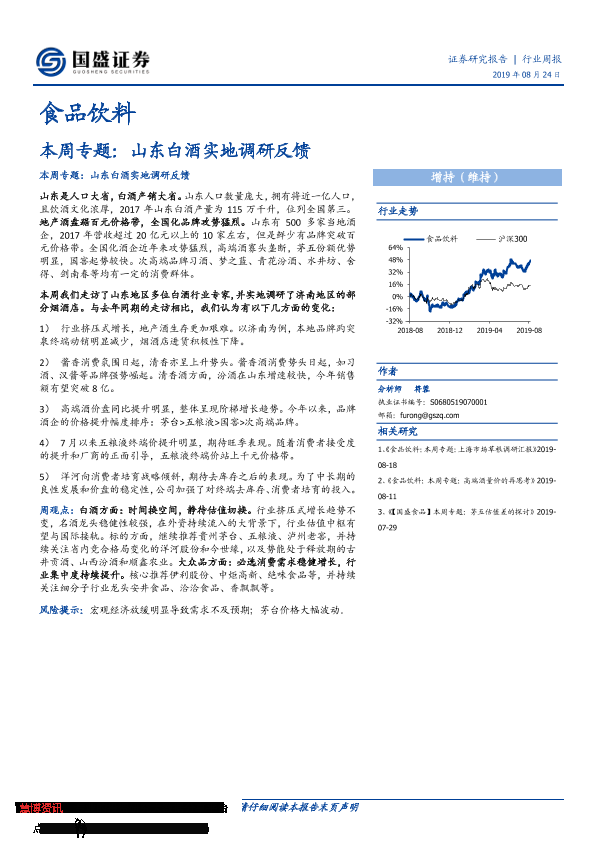 【国盛证券】【20190824】20190824-国盛证券-食品饮料行业本周专题:山东白酒实地调研反馈-22页
