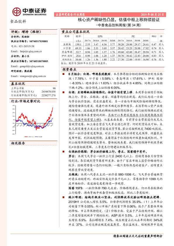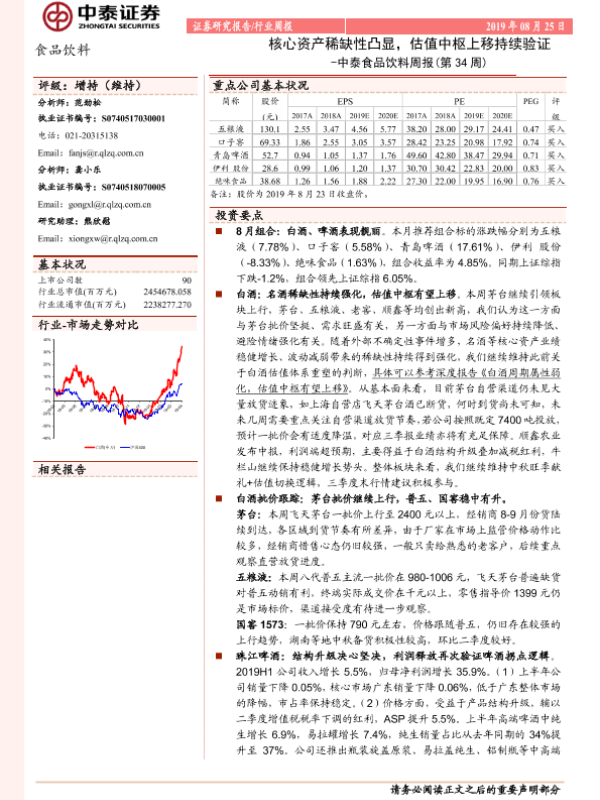 【中泰证券】【20190825】中泰食品饮料周报(第34周):核心资产稀缺性凸显,估值中枢上移持续验证-7页