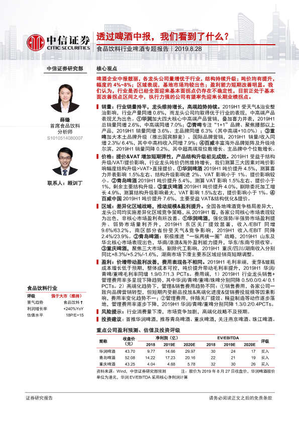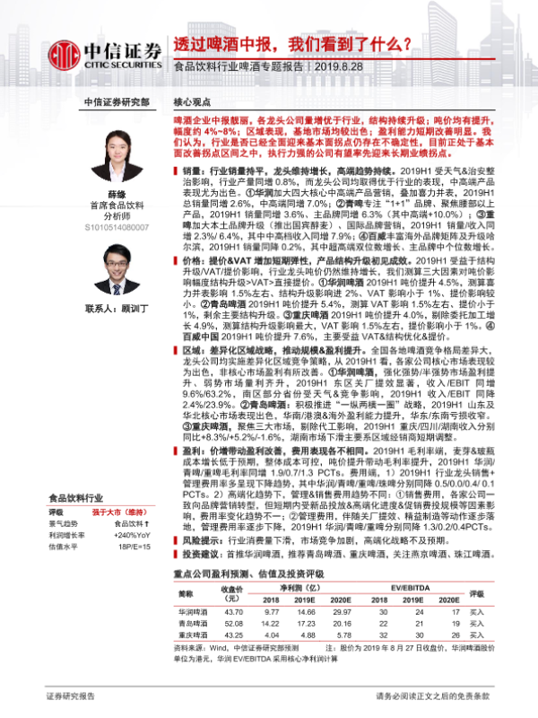 【中信证券】【20190828】20190828-中信证券-食品饮料行业啤酒专题报告:透过啤酒中报,我们看到了什么?-22页