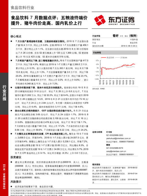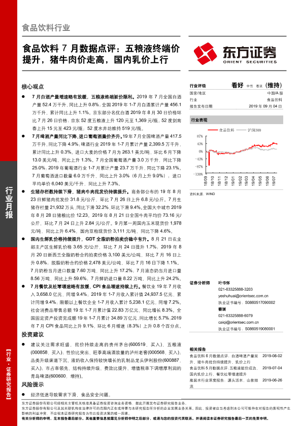 【东方证券】【20190904】20190904-东方证券-食品饮料7月数据点评:五粮液终端价提升,猪牛肉价走高,国内乳价上行-14页