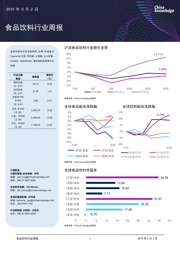 【China Knowledge】【20190902】20190902-China Knowledge-食品饮料行业周报-14页