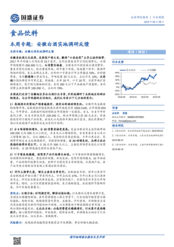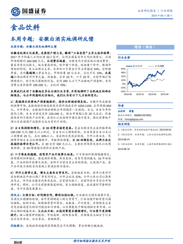 【国盛证券】【20190908】20190908-国盛证券-食品饮料本周专题:安徽白酒实地调研反馈-24页