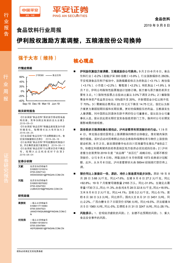 【平安证券】【20190908】食品饮料行业周报:伊利股权激励方案调整,五粮液股份公司换帅-6页