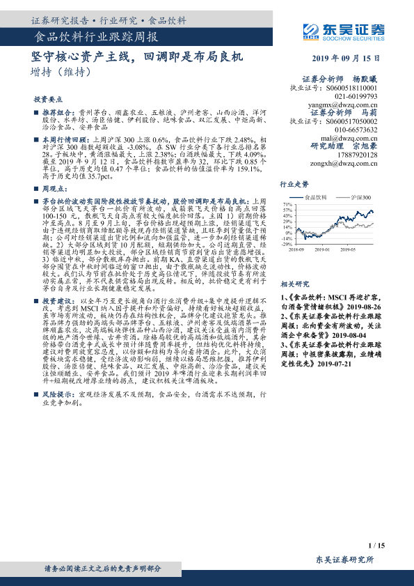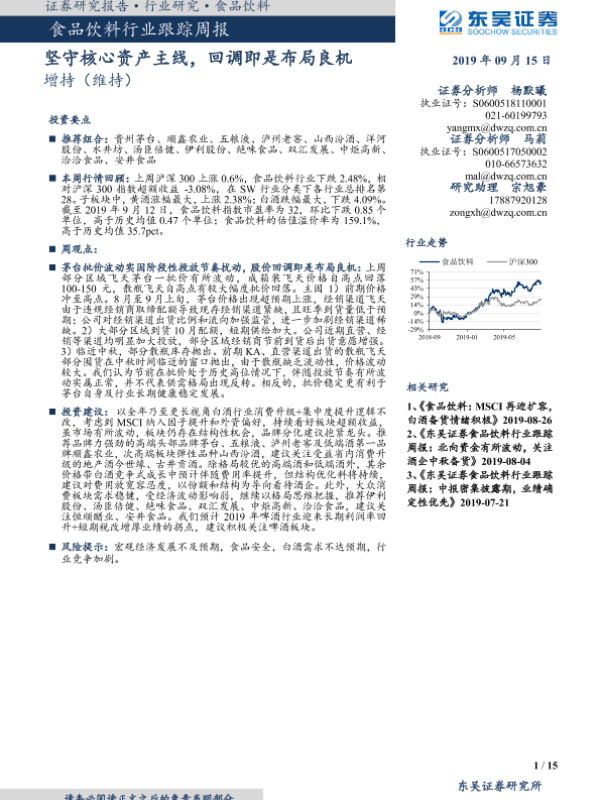 【东吴证券】【20190915】食品饮料行业跟踪周报:坚守核心资产主线,回调即是布局良机-15页