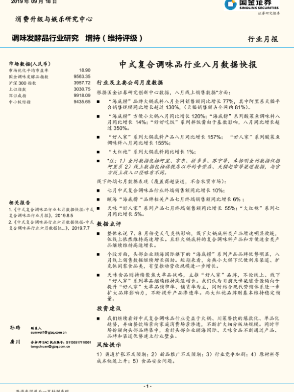 【国金证券】【20190918】20190918-国金证券-调味发酵品行业研究月报:中式复合调味品行业八月数据快报-3页