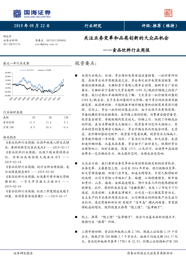 【国海证券】【20190922】食品饮料行业周报:关注业务变革和品类创新的大众品机会-20页
