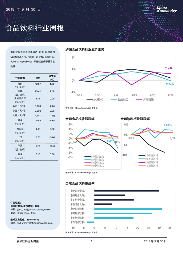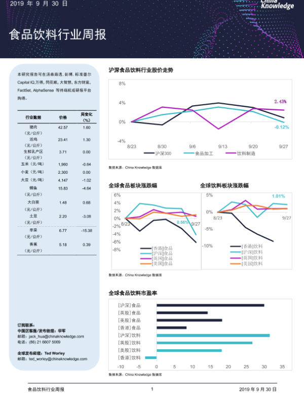 【China Knowledge】【20190930】食品饮料行业周报-15页
