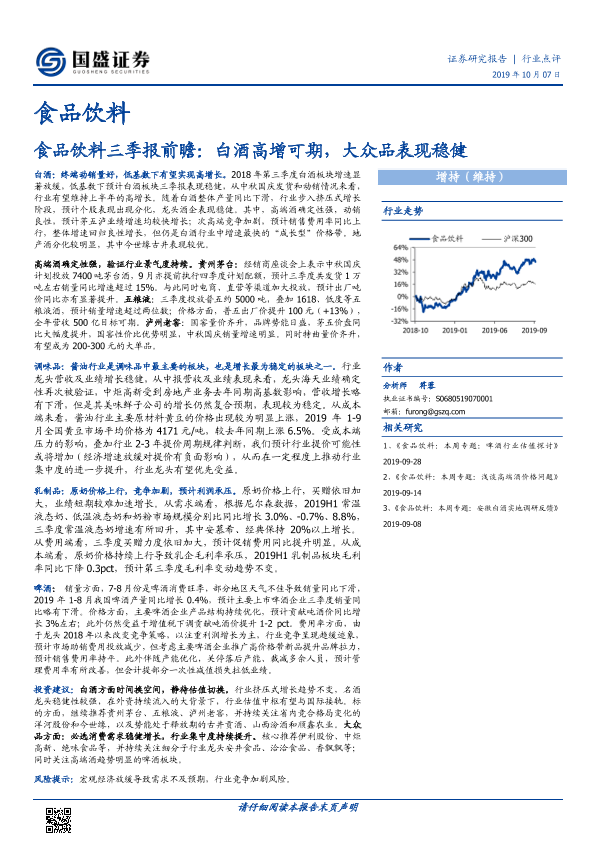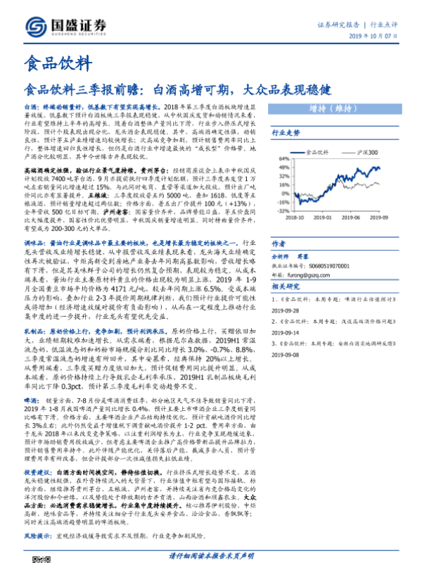 【国盛证券】【20191007】食品饮料三季报前瞻:白酒高增可期,大众品表现稳健-11页