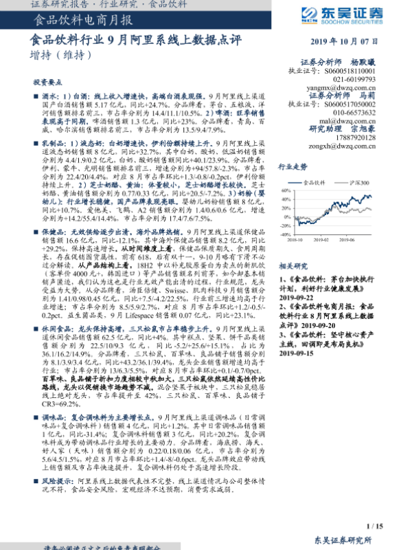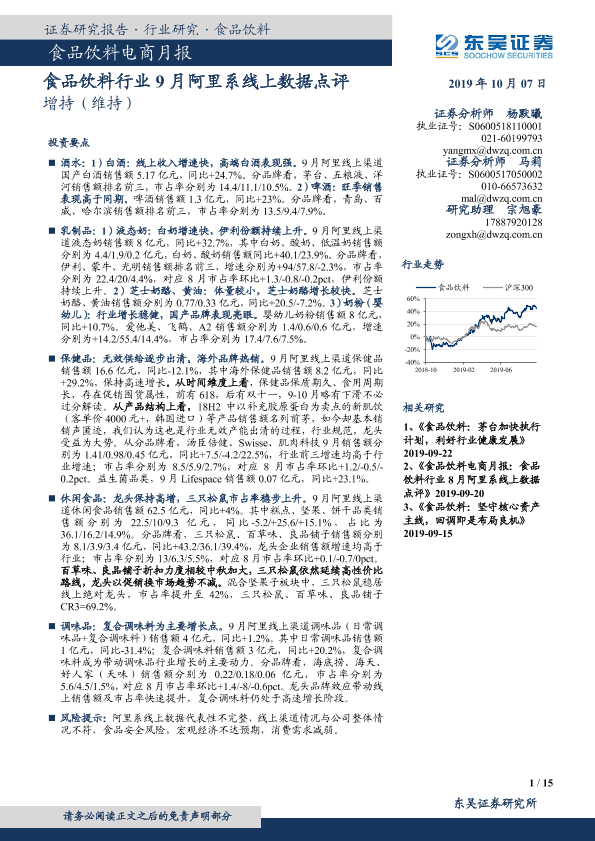 【东吴证券】【20191007】食品饮料电商月报:食品饮料行业9月阿里系线上数据点评-15页