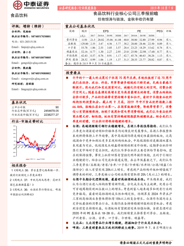 【中泰证券】【20191007】食品饮料行业核心公司三季报前瞻:任他惊涛与骇浪,金秋丰收仍有望-14页