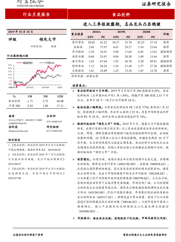 【财信证券】【20191010】食品饮料行业月度报告:进入三季报披露期,名品龙头凸显稳健-6页