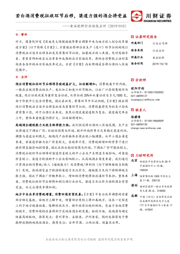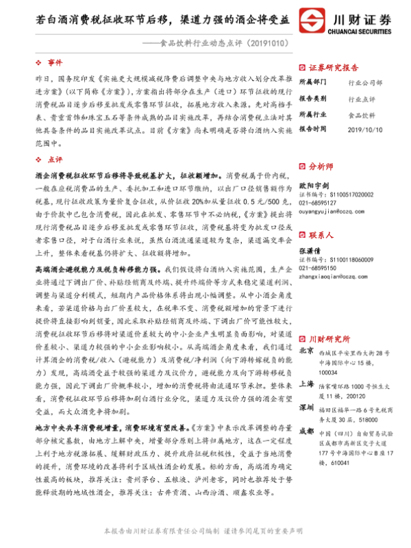 【川财证券】【20191010】若白酒消费税征收环节后移,渠道力强的酒企将受益-3页