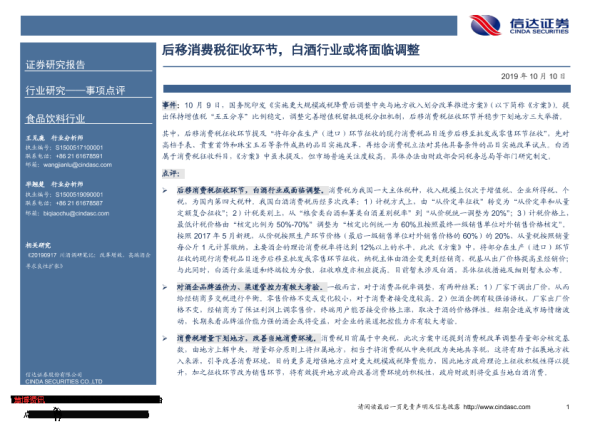 【信达证券】【20191010】食品饮料行业事项点评:后移消费税征收环节,白酒行业或将面临调整-4页