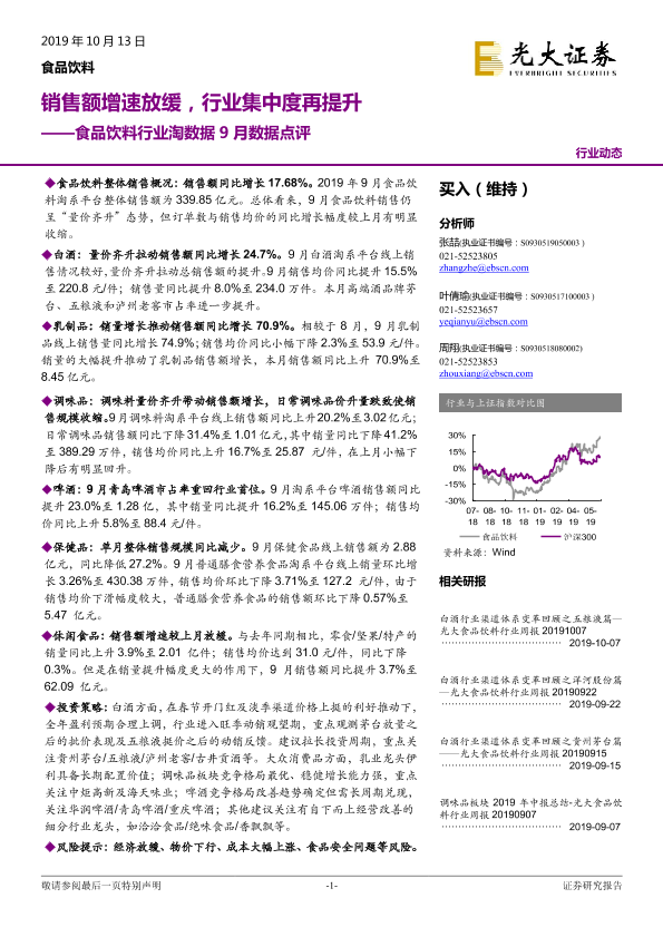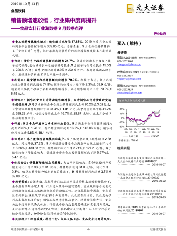 【光大证券】【20191013】食品饮料行业淘数据9月数据点评:销售额增速放缓,行业集中度再提升-24页