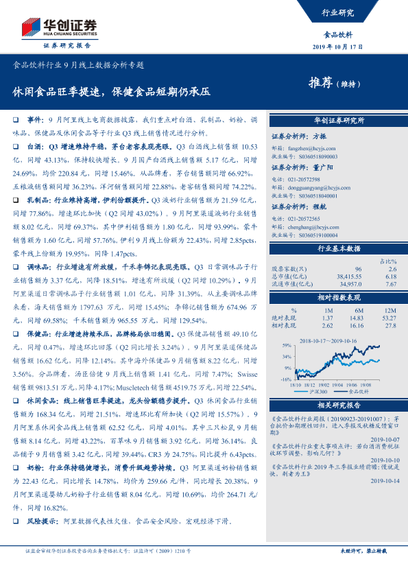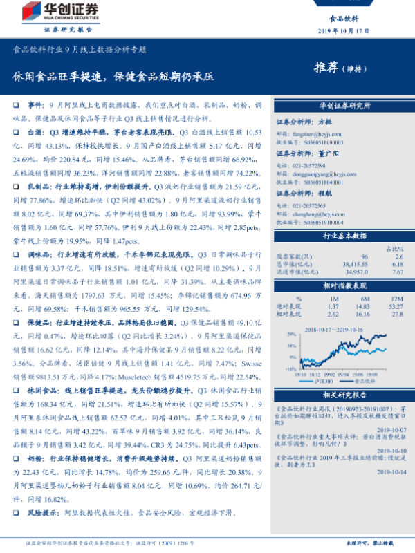 【华创证券】【20191017】食品饮料行业9月线上数据分析专题:休闲食品旺季提速,保健食品短期仍承压-20页