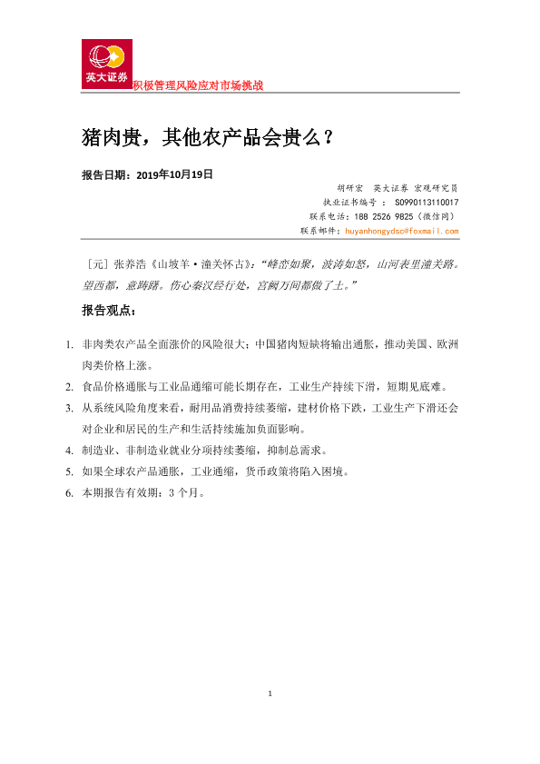 【英大证券】【20191019】猪肉贵,其他农产品会贵么?-19页
